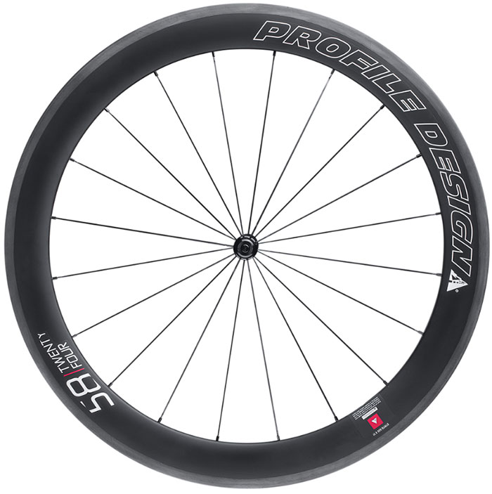 Races, training, group rides, gran fondos—Profile’s 58/Twenty Four Full Carbon Clinchers will be your new secret weapon. Their engineers used fluid dynamic modeling and wind tunnel testing to create a super slippery 58mm-deep by 24.5mm-wide rim for maximum free speed and slicing right through head and cross winds. Adding mph are the Sapim CX-Ray bladed spokes, which have locking nipples so they stay tight. These wing-like wheels save you massive energy on the flats and they're also light enough to rocket you up the climbs. Plus, Profile's careful hand assembly and advanced carbon layup mean rock-solid stiffness for outstanding power transfer. And, because sometimes you just have to hit the brakes, Profile includes high-tech carbon wrapping and a heat-resistant resin in its rims, plus carbon-compatible brake pads come with the wheels so you'll have more stopping power than ever. Upgrade to the 58/Twenty Fours and get ready to become a better rider.